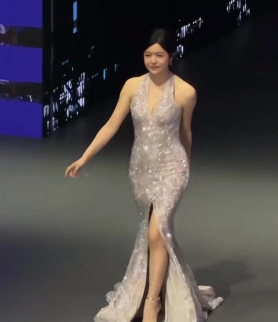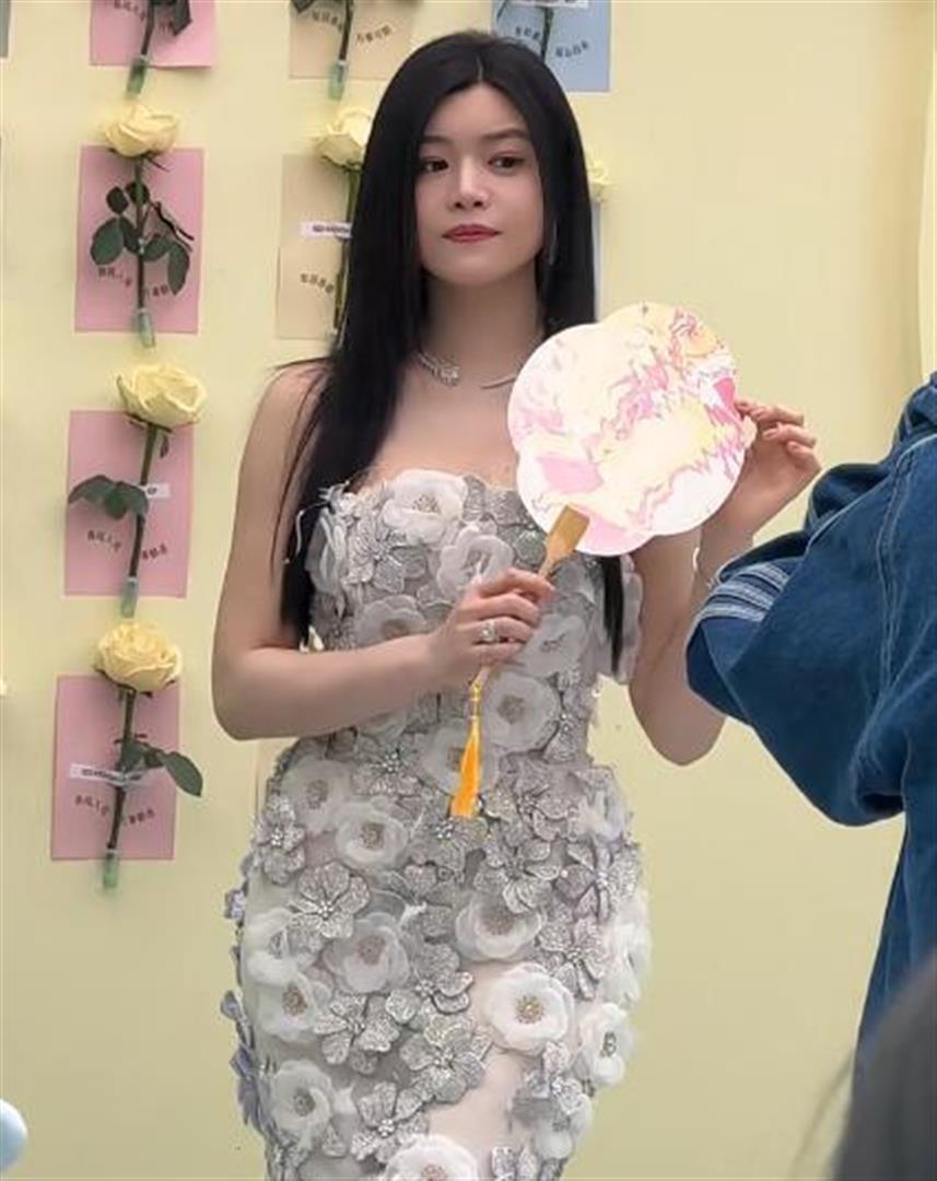她穿了一身金属流光钻裙,本来想走赛博千金路线,结果高清镜头一怼,后背直接勒出两层赘肉,前侧开叉处被撑得紧绷绷的,裙摆一走全是褶皱。 手臂圆润厚实,藏都藏不住。