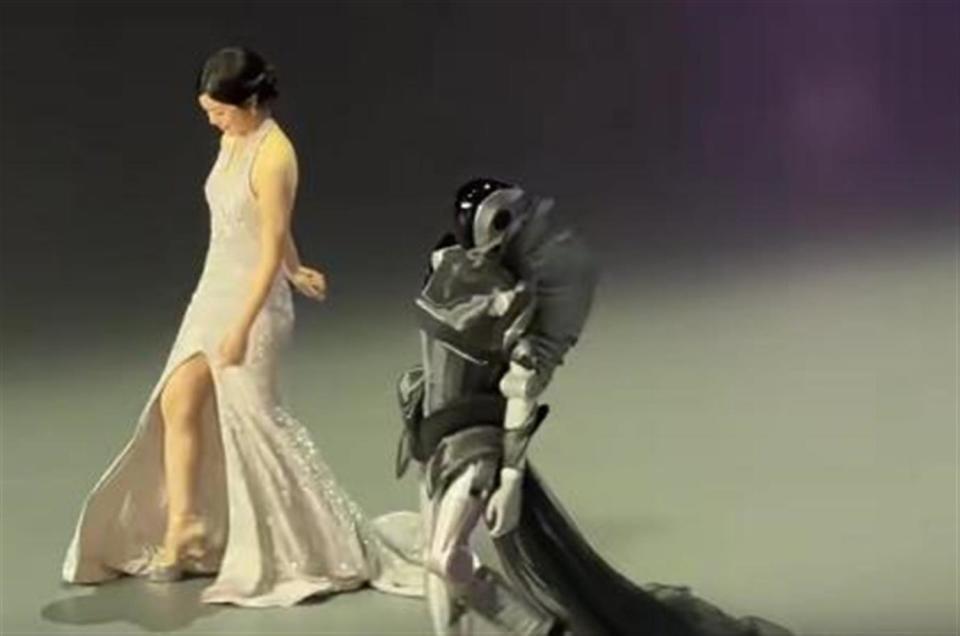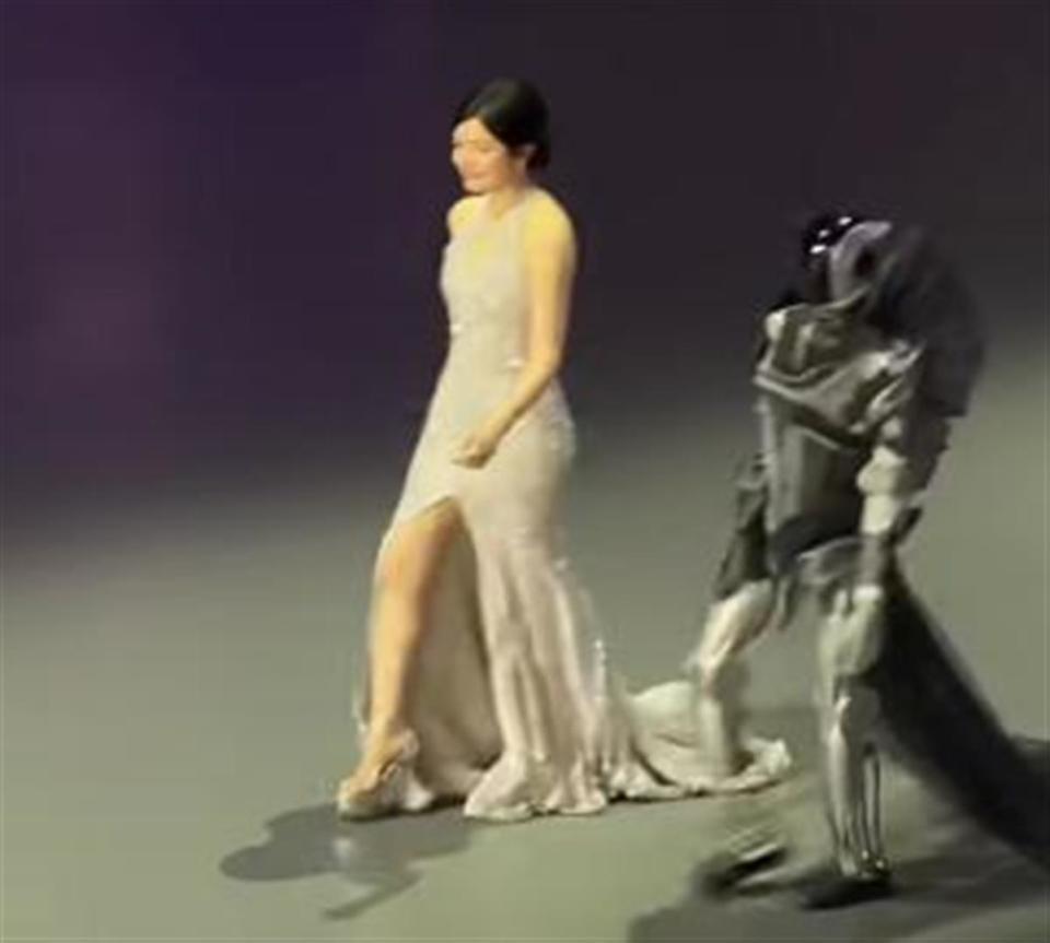 更绝的是,她还踩着十几厘米的恨天高,跟国产人形机器人LimX Luna并肩走毯——这是内娱红毯第一次明星和机器人同框。 机器人步伐规整机械,她倒好,频频侧头看机器人,眼神里带着好奇又有点拘谨。 鞋跟太高,只能小步挪动,姿态被网友调侃“爷们感拉满”,全程小心翼翼生怕崴脚。
